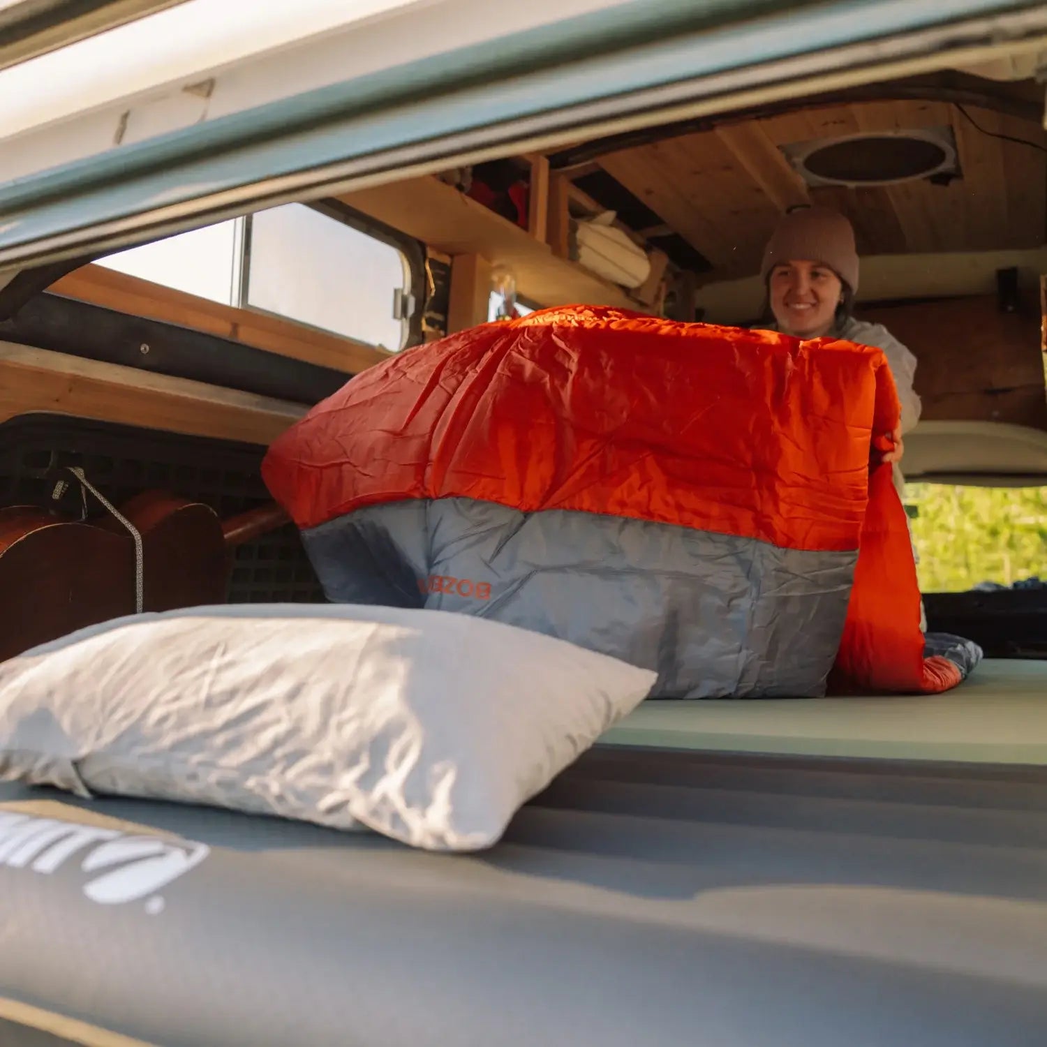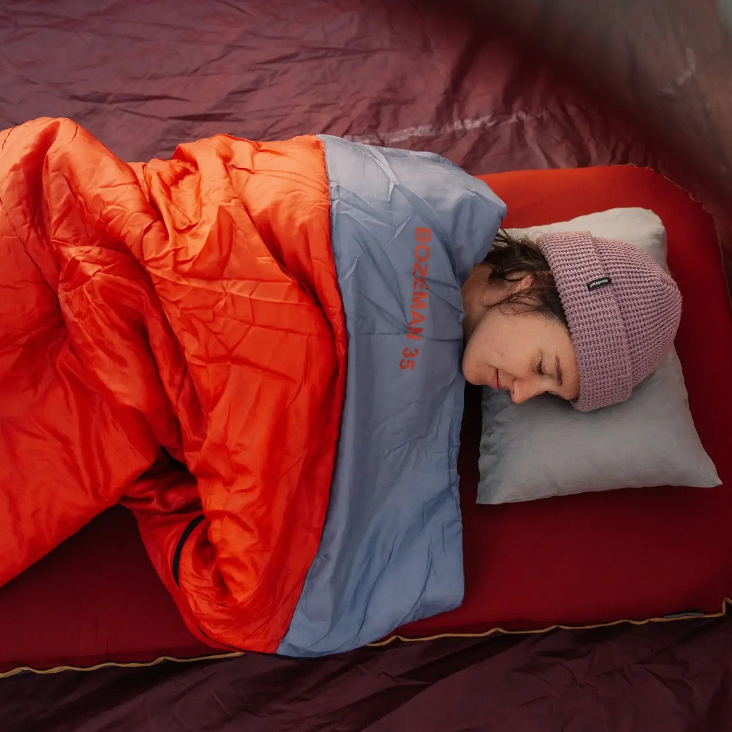 The Bozeman 35 does not include a dedicated pocket or sleeve to secure a sleeping pad. It does feature a built-in pillow pocket to help keep your pillow in place throughout the night. To prevent your sleeping pad from sliding around, consider using a non-slip pad or external straps to hold it in place under the sleeping bag.