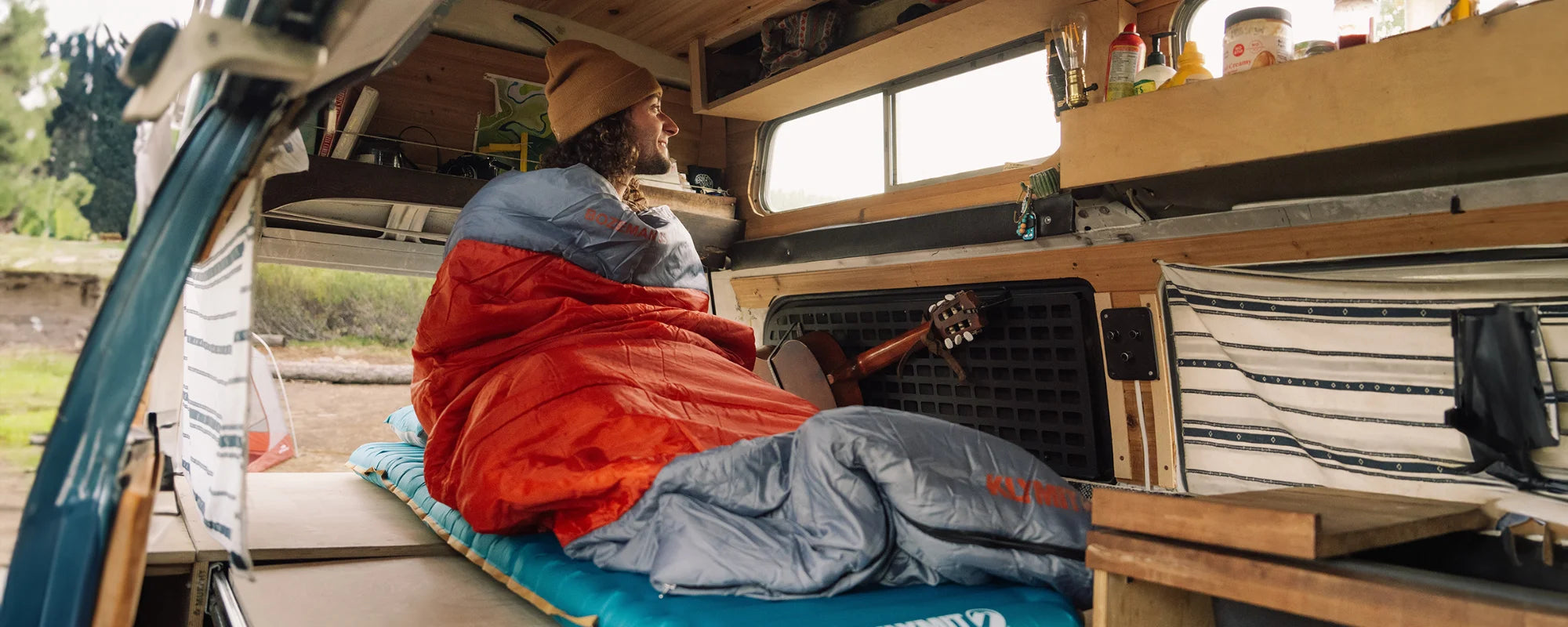 Our Bozeman 35 sleeping bag is water-resistant. The durable micro-polyester shell is designed to repel light moisture and protect the insulation inside. For additional protection in wet conditions, you can use a waterproofing spray specifically designed for outdoor gear. However, it's important to ensure that your bag can still "breathe" to release water vapor while you sleep, preventing moisture buildup inside the bag.