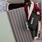 The Klymit Pump Sack (20L) is an effortless roll top pump for your sleeping pad. Using a pump instead of your lungs to inflate your product reduces the condensation in your sleeping pad and assists in quickly and efficiently setting up your camp. Simply snap the pump to your pad's valve, catch air in the pump, and roll the pump towards the valve to push air into the pad. Plus, the Pump Sack can double as a stuff sack for your sleeping pad or other gear. Compatible with the Klymit FLIP VALVE.